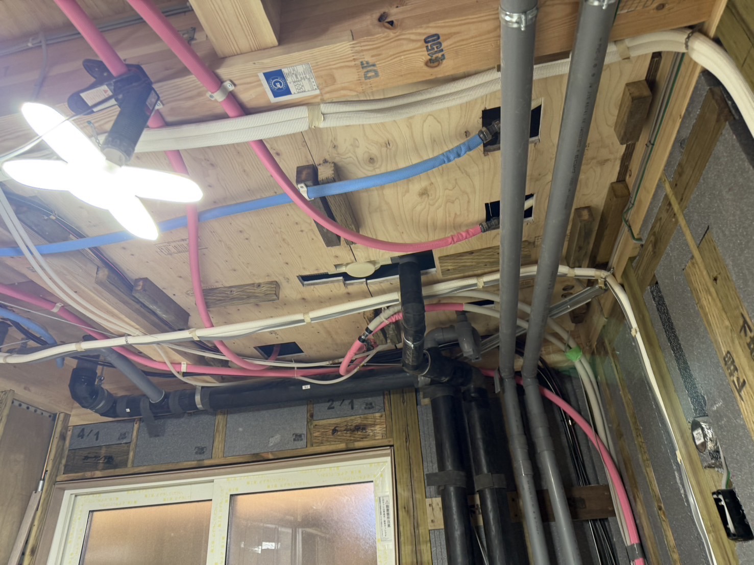 この度戸建て物件の屋内での給排水工事をおこなってまいりました。下記施工中の事例写真です。