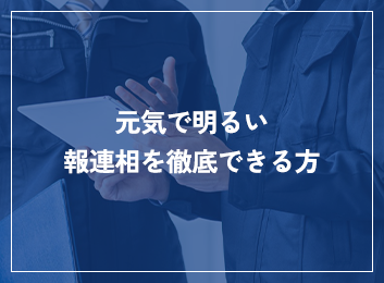 当社では、元気な挨拶とコミュニケーションを徹底しております。