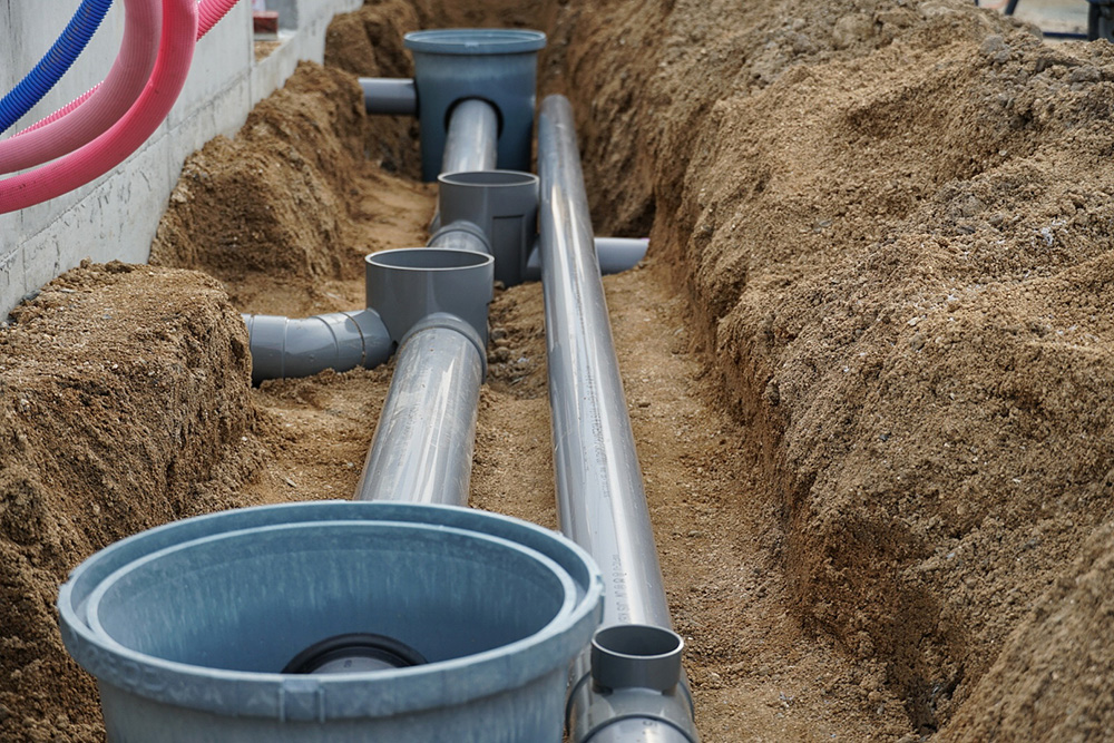 水回りの排水口から、排水層や公共下水道につながる配管、場合によっては浄化槽を設置します。